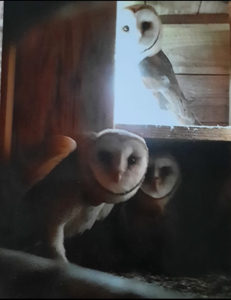 Seit einigen Jahren ist eine Eulenfamilie in den den Gibel der Scheune eingezogen.
