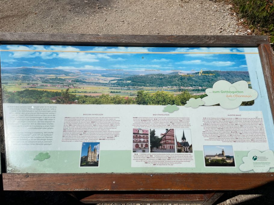 Der Begriff „Gottesgarten“ stammt nicht von ungefähr: Majestätisch thront dort das berühmte Kloster Banz auf der einen Mainseite, während sich auf der anderen das weithin sichtbare Kloster Vierzehnheiligen mit seiner barocken Basilika erhebt. Zwischen diesen beiden spirituellen Wahrzeichen liegt der Staffelberg – ein markanter Tafelberg mit einmaligem Rundblick über das gesamte Maintal, das fränkische Jura und bei klarem Wetter sogar bis ins Thüringer Land. Hier oben scheint die Zeit stillzustehen – perfekt für eine Wanderung mit Aussicht und Tiefgang.